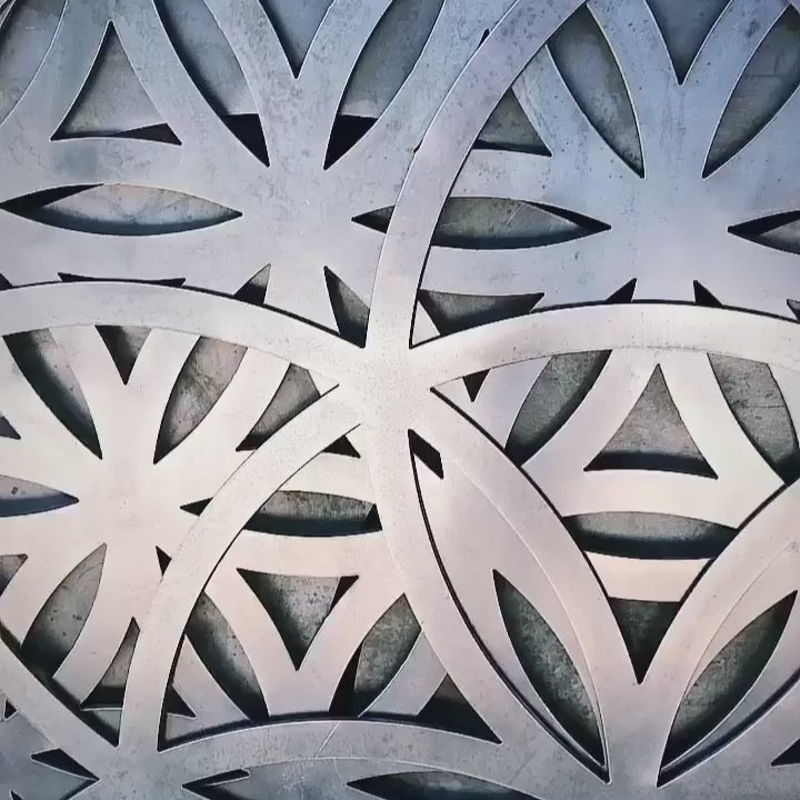 Cuadro con diseño de la bella Flor de la Vida, hecho por capas de metal. Símbolo que representa las formas fundamentales de los seres en el espacio y tiempo.